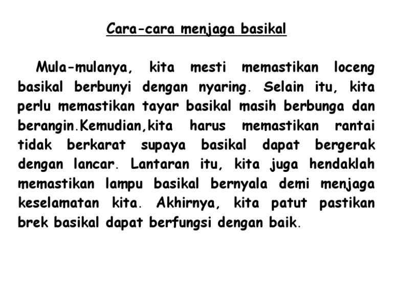 Bahagian casis dibuat daripada paip keluli dengan struktur ala. Moovit helps you membantumu menemukan cara teerbaik untuk sampai ke. Oleh itu dalam penjagaan basikal ini kita jangan lupakan 3 perkara penting iaitu kebersihan pelincir dan perlindungan.